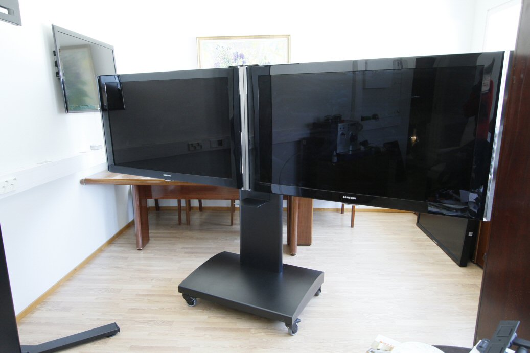 Kahden näytön tuplateline ilman pyöriä.